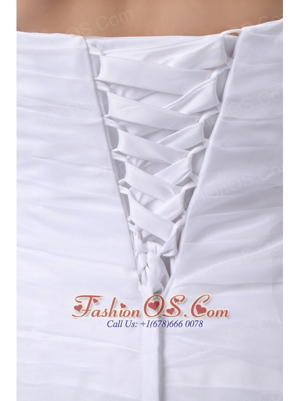 The romantic bride will love this wedding gown.This stunning one shoulder dress is decorated with flower encrusted strap cross the bust to the waist.The asymmetrically ruched bodice is accented with a drop waist which has several flower decorations to coordinate with the strap.This gown has a skirt comprised of layers of soft ruffles for spectacular texture. The skirt is voluminous and ripe with movement for your first dance as a Mrs with a lace-up back.