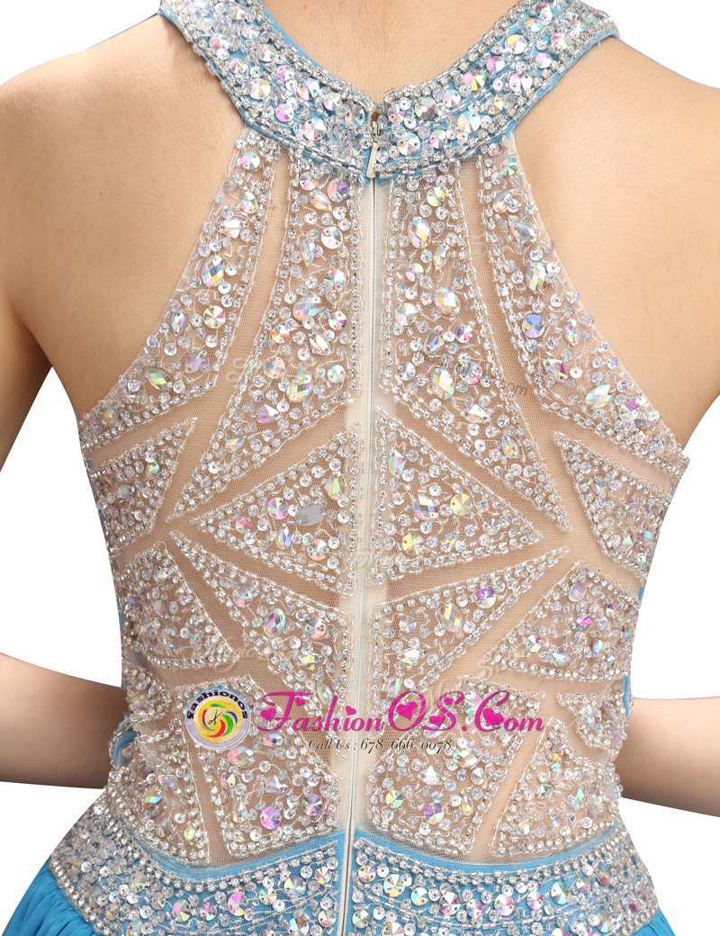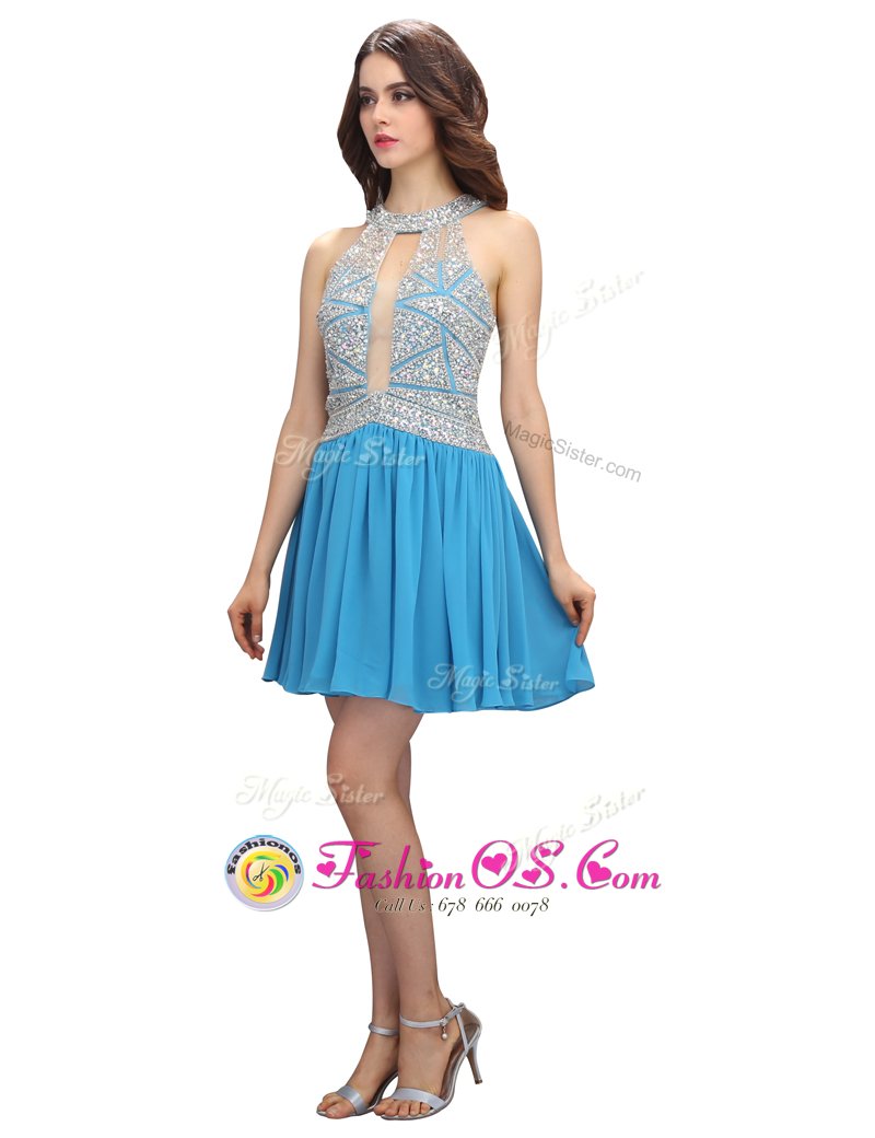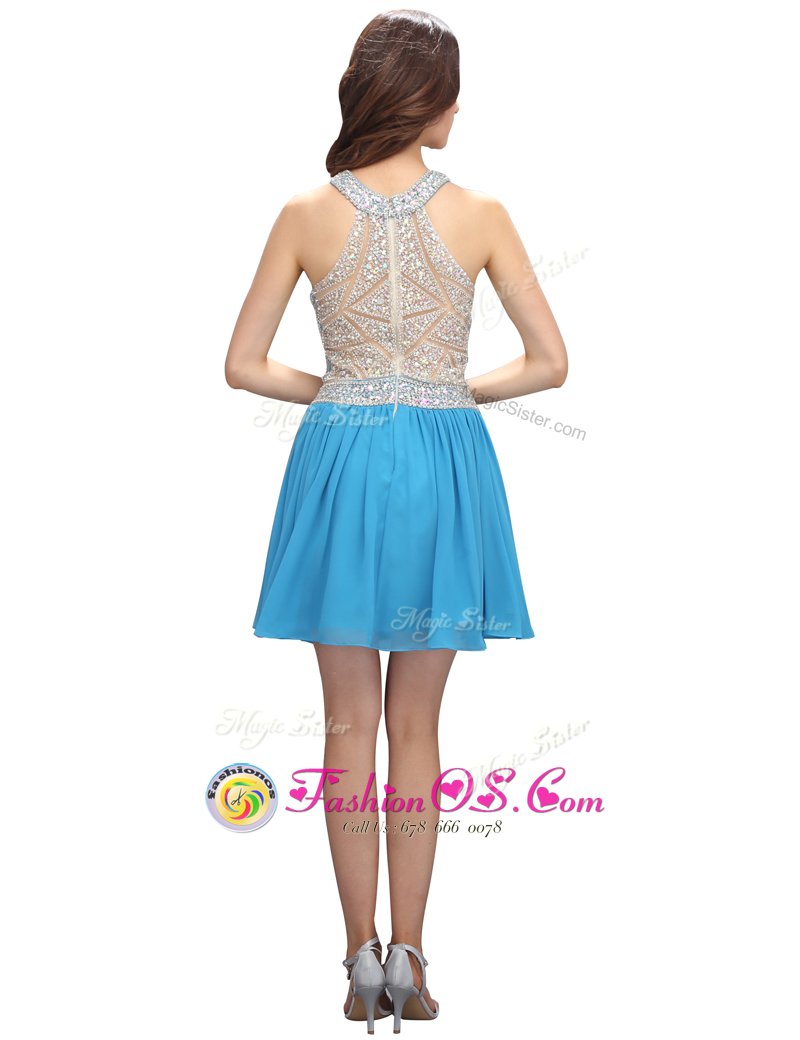 Deluxe Scoop Chiffon Sleeveless Mini Length Prom Gown and Beading