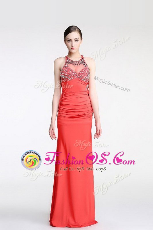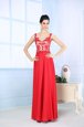 Scoop Watermelon Red Chiffon Criss Cross Evening Dress Sleeveless Floor Length Beading