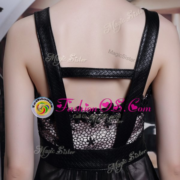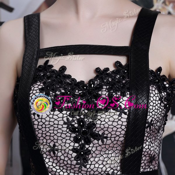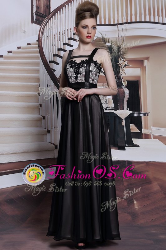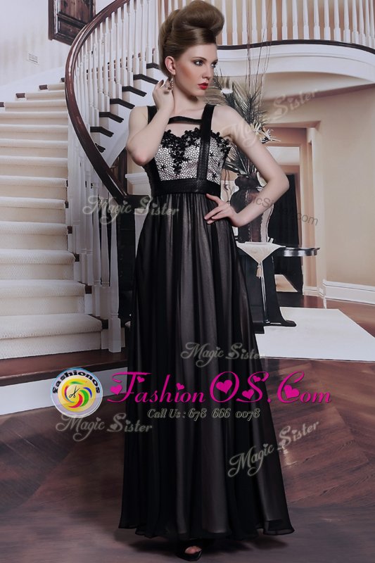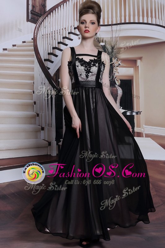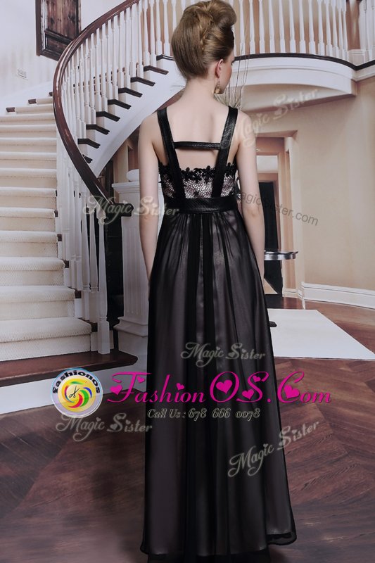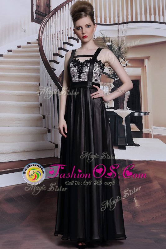 Amazing Black Sleeveless Floor Length Embroidery Criss Cross Prom Dresses