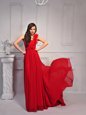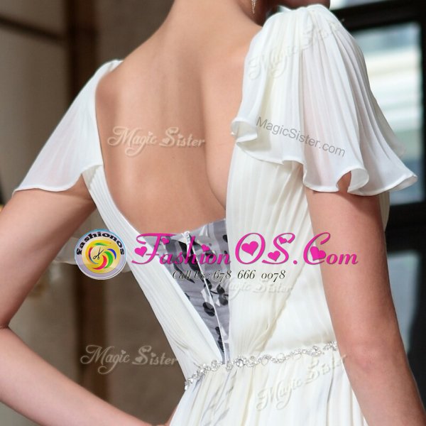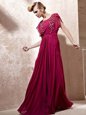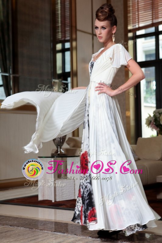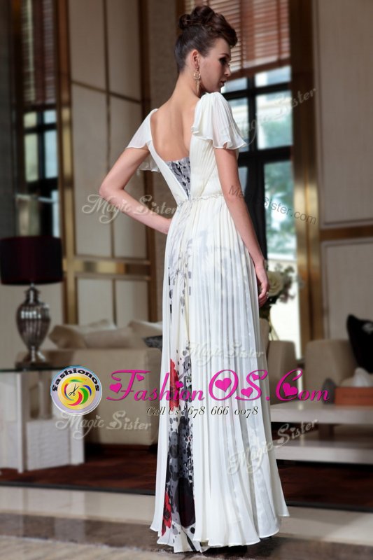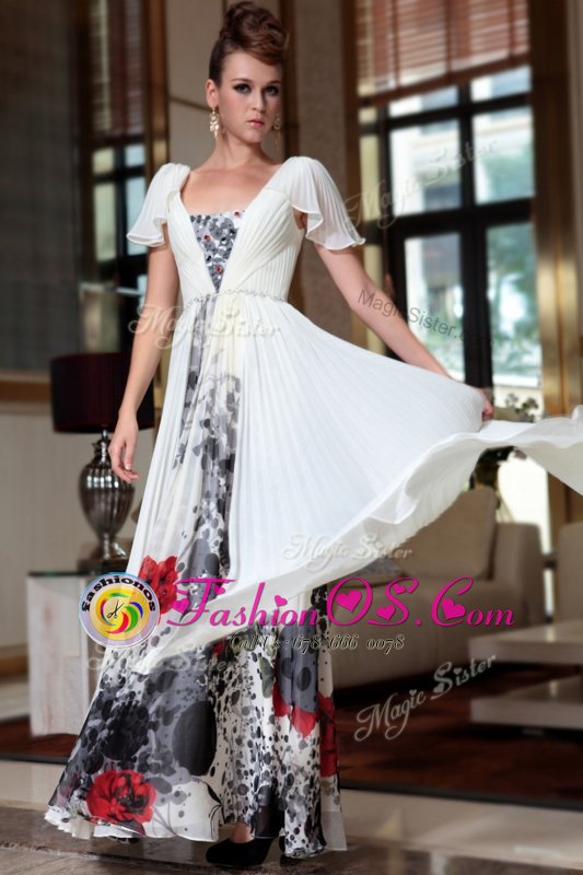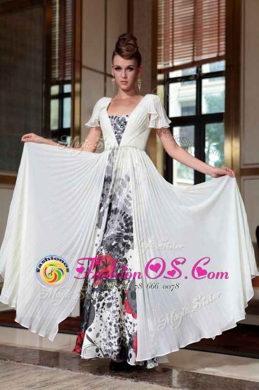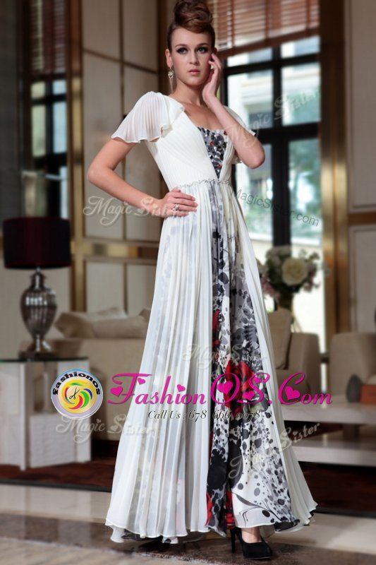 Amazing Off the Shoulder Ankle Length Multi-color Evening Dress Chiffon Cap Sleeves Beading and Pattern
