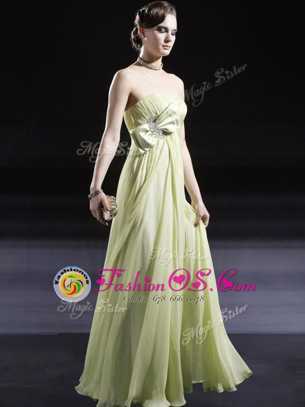 Excellent Light Yellow Strapless Neckline Ruching and Bowknot Evening Dress Sleeveless Side Zipper