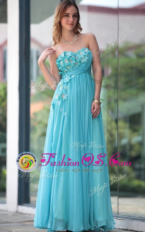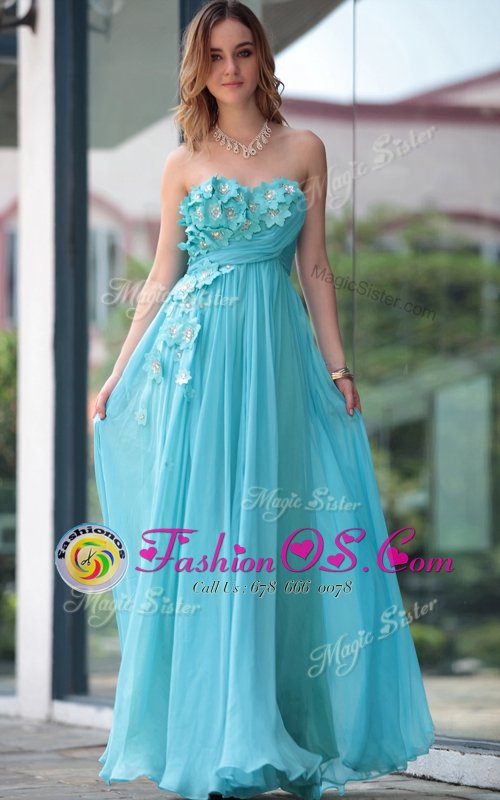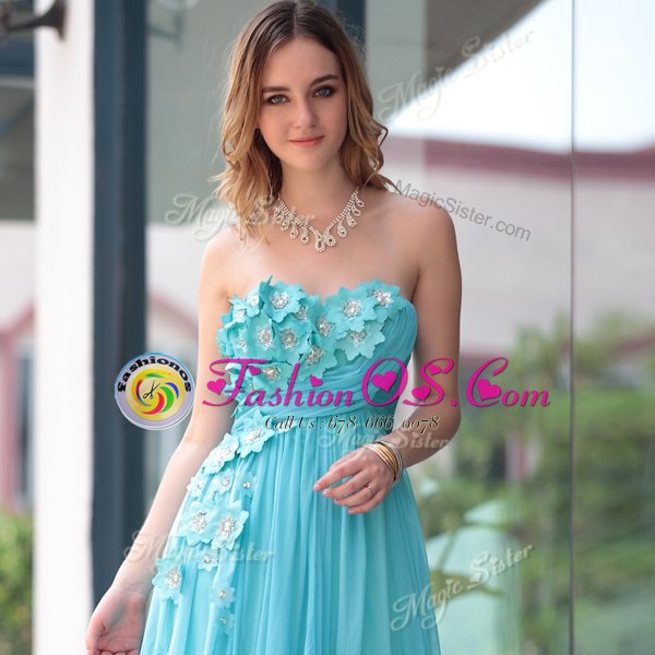 Captivating Sweetheart Sleeveless Zipper Aqua Blue Chiffon