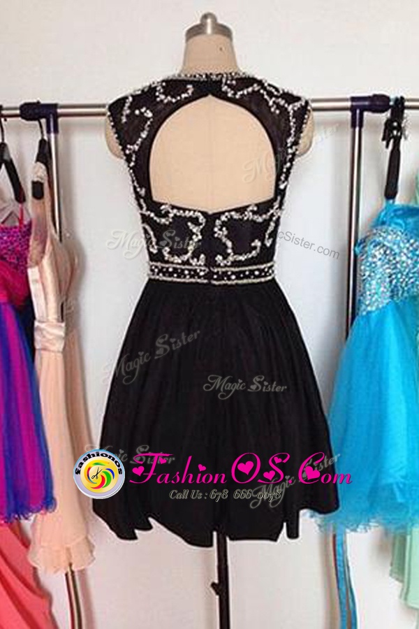 Black Scoop Neckline Beading Prom Dresses Sleeveless Zipper