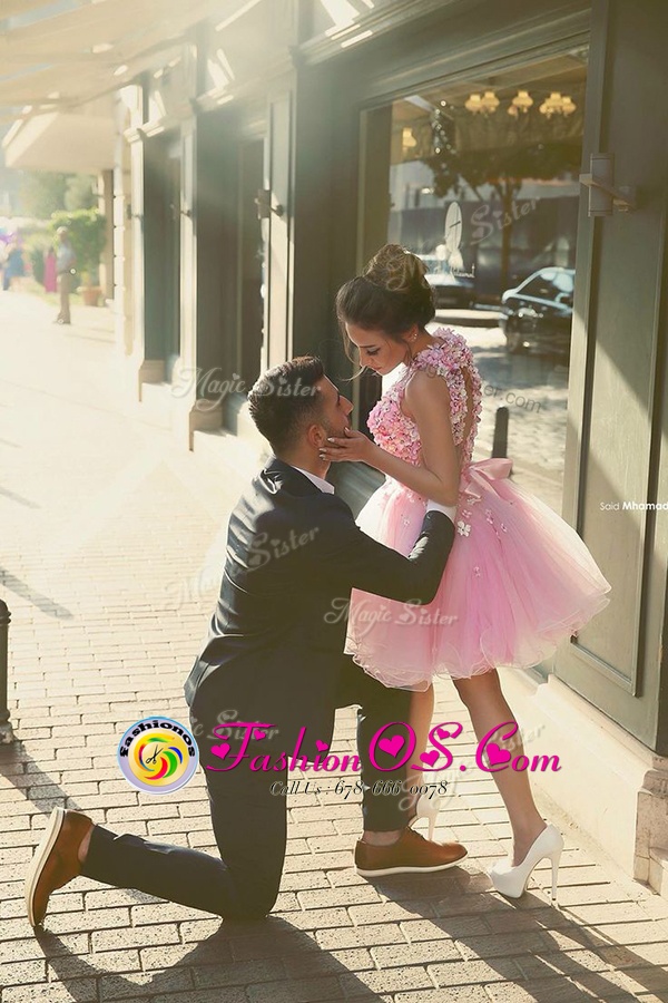 High Class Halter Top Mini Length A-line Sleeveless Peach Prom Dresses Zipper