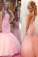Best Mermaid Hot Pink Scoop Neckline Beading Homecoming Dress Sleeveless Backless
