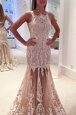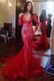 Smart Mermaid Red Zipper High-neck Sequins Prom Dresses Tulle Sleeveless