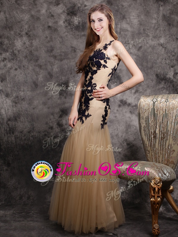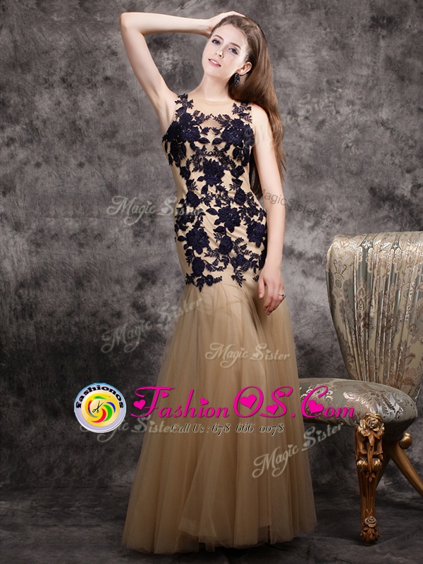 Mermaid Scoop Sleeveless Lace and Appliques Side Zipper
