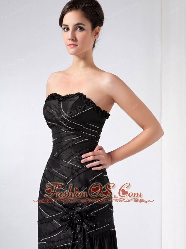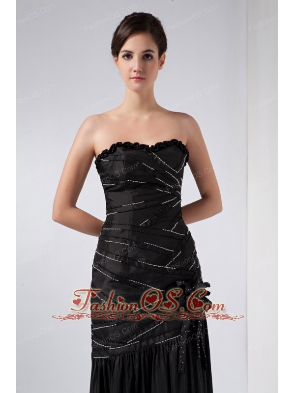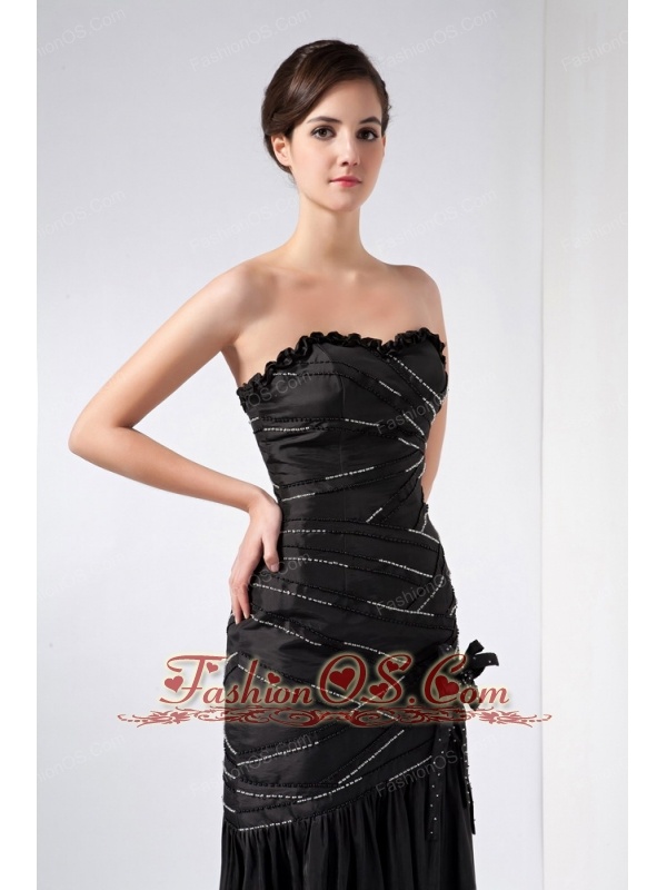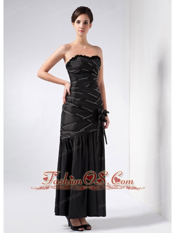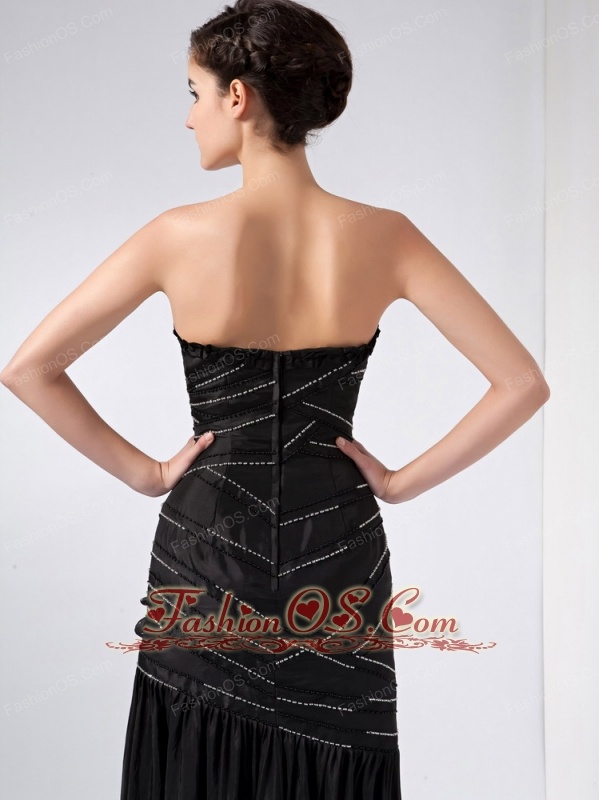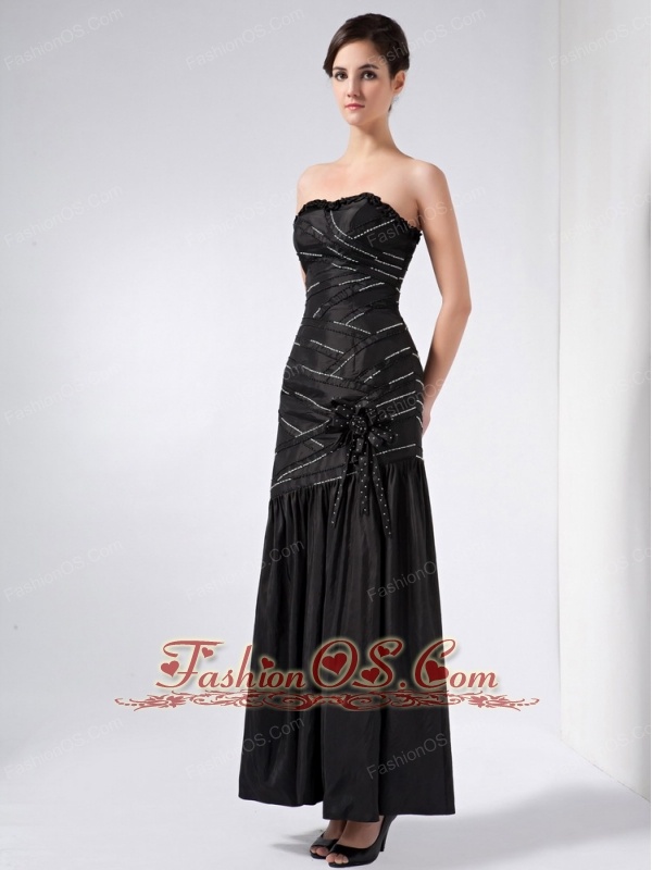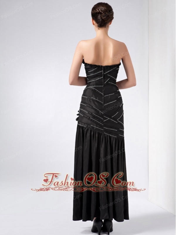 Fashionable Black Column Strapless Beading Prom Dress Ankle-length Taffeta