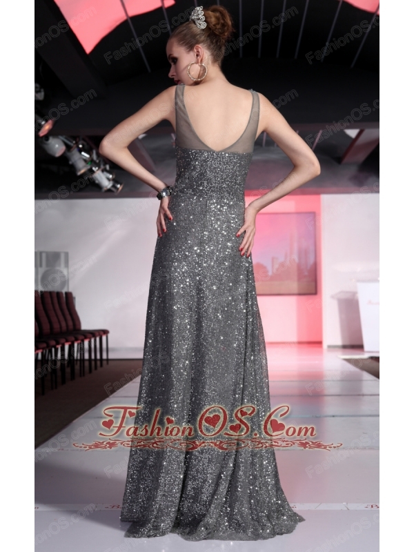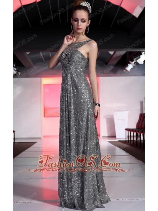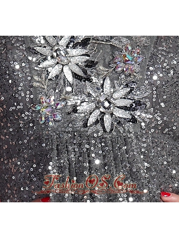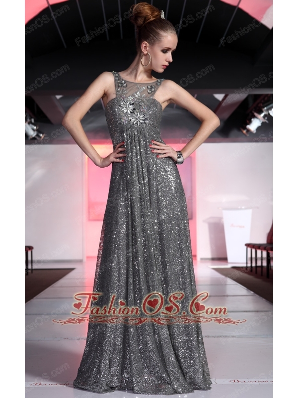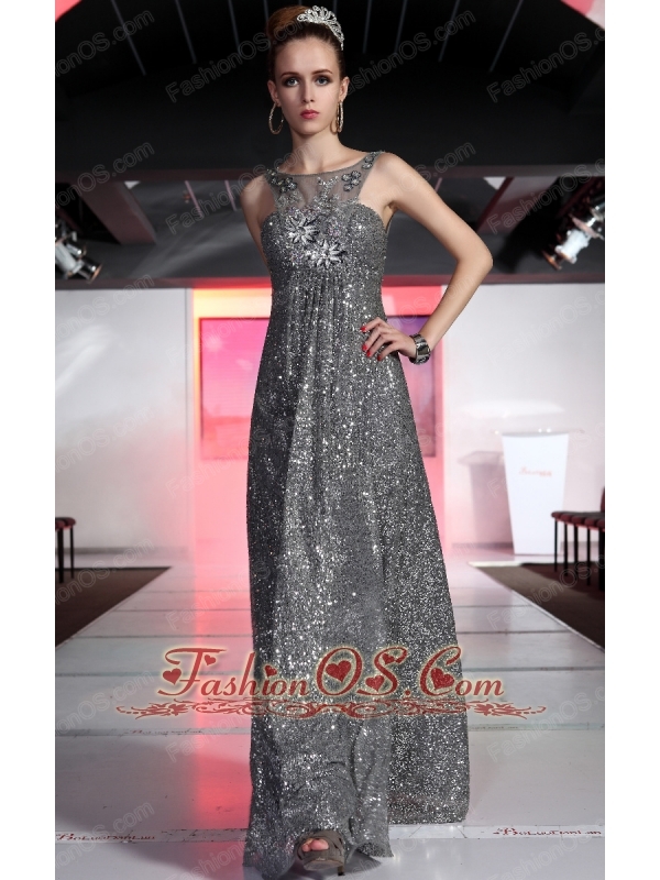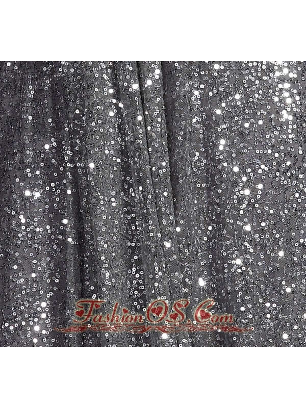 Silver Empire Scoop Brush Train Sequin Rhinestones Prom / Evening Dress