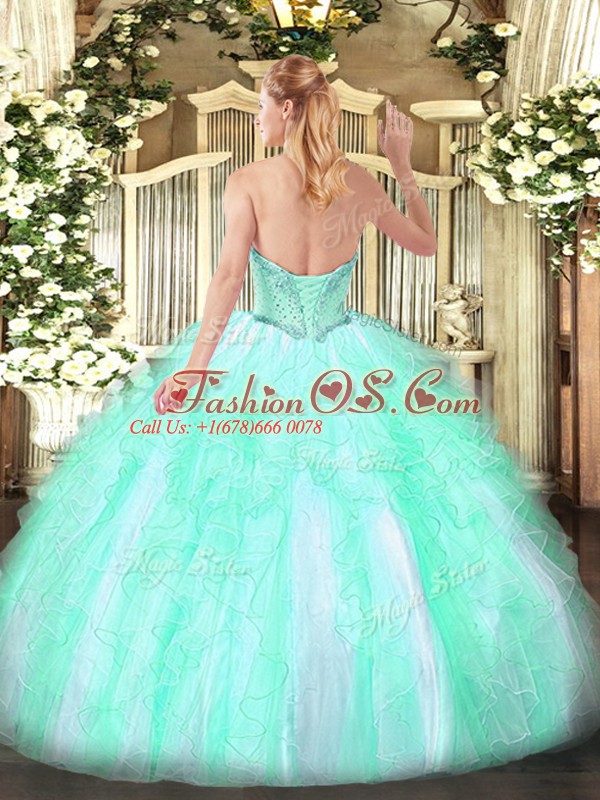 Discount Tulle Lace Up Sweetheart Sleeveless Floor Length Quince Ball Gowns Beading and Ruffles