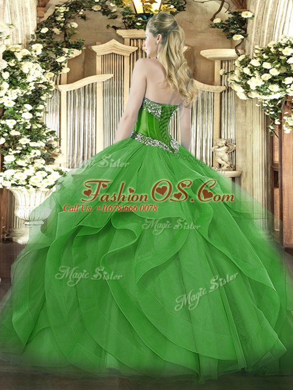 Fabulous Blue Lace Up Sweet 16 Dress Beading and Ruffles Sleeveless Floor Length