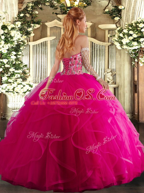 Royal Blue Ball Gowns Tulle Scoop Sleeveless Embroidery and Ruffles Floor Length Lace Up Quince Ball Gowns