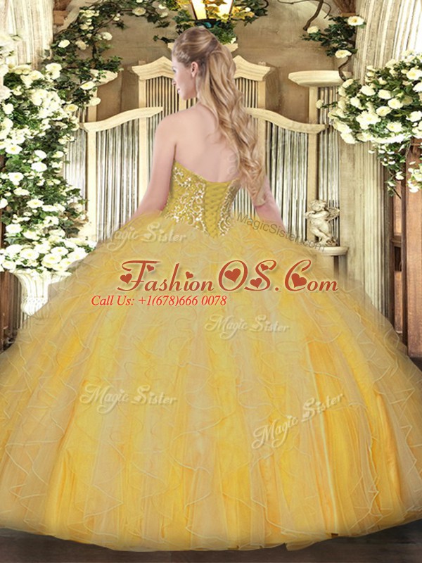 Fashion Fuchsia Sweetheart Neckline Beading and Ruffles Quinceanera Gown Sleeveless Lace Up