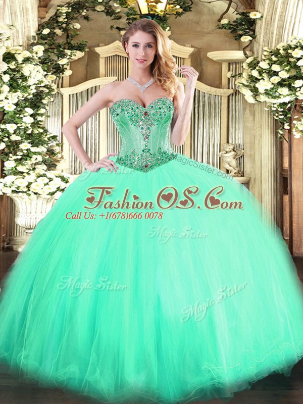 Inexpensive Aqua Blue Lace Up Sweet 16 Quinceanera Dress Beading Sleeveless Floor Length