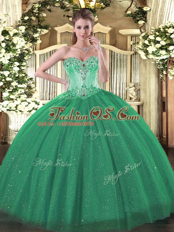 Sleeveless Beading Lace Up Quince Ball Gowns