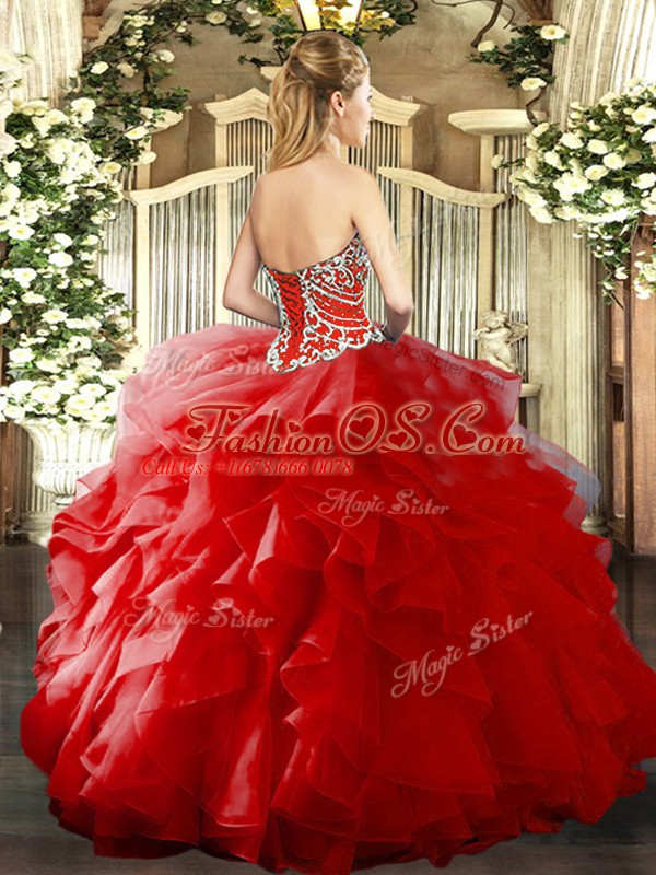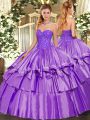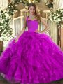 Beading and Ruffles Sweet 16 Dress Fuchsia Lace Up Sleeveless Floor Length