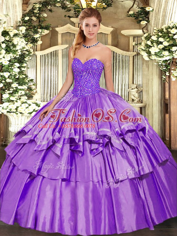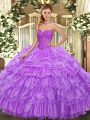 Lavender Sleeveless Floor Length Beading and Ruffles Lace Up 15th Birthday Dress
