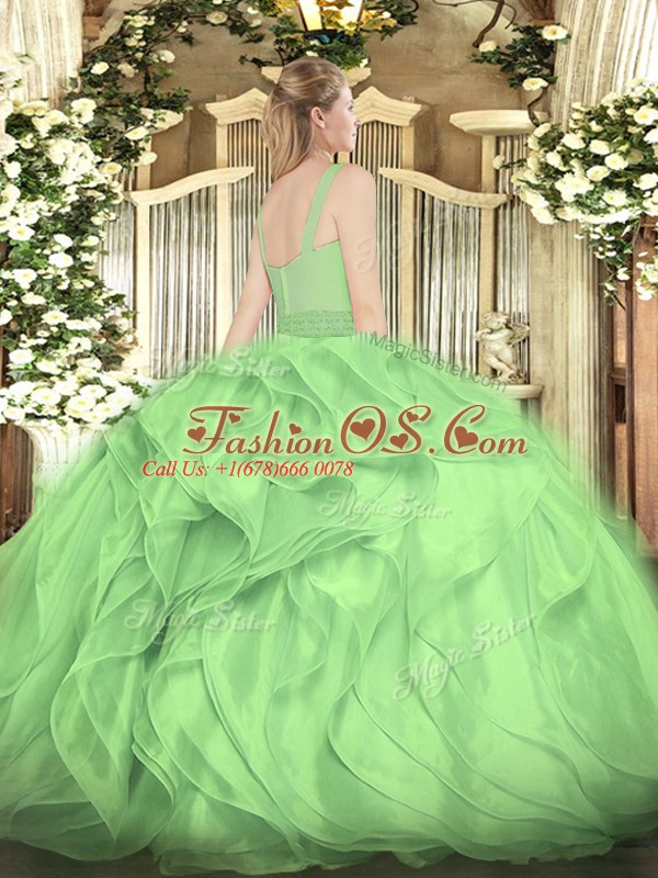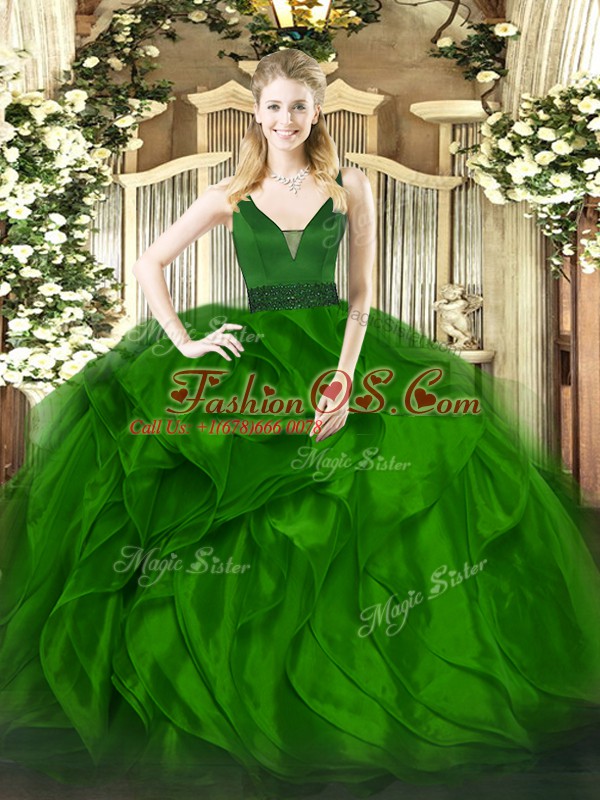Most Popular Floor Length Green Quinceanera Dress Organza Sleeveless Beading and Ruffles