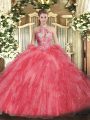 Aqua Blue Lace Up Ball Gown Prom Dress Beading and Ruffled Layers Sleeveless Floor Length