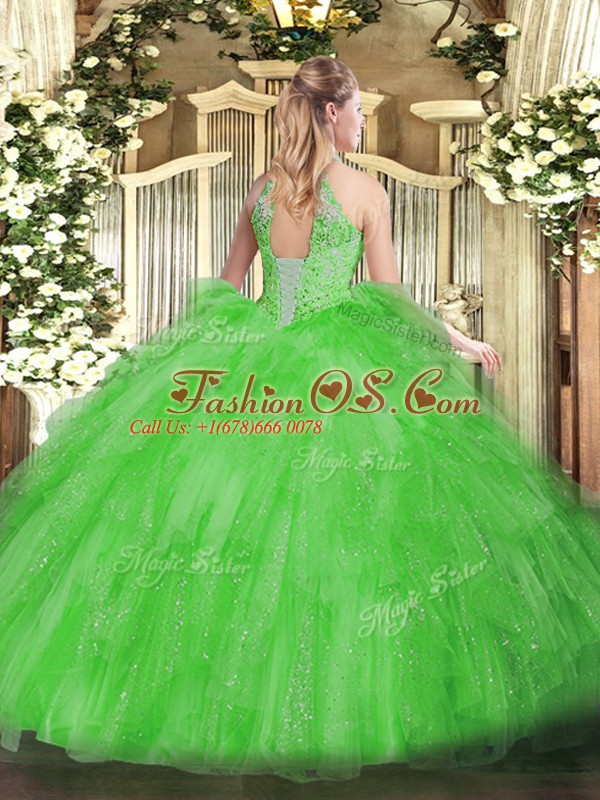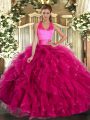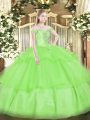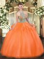 Floor Length Ball Gowns Sleeveless Coral Red Quinceanera Dresses Lace Up