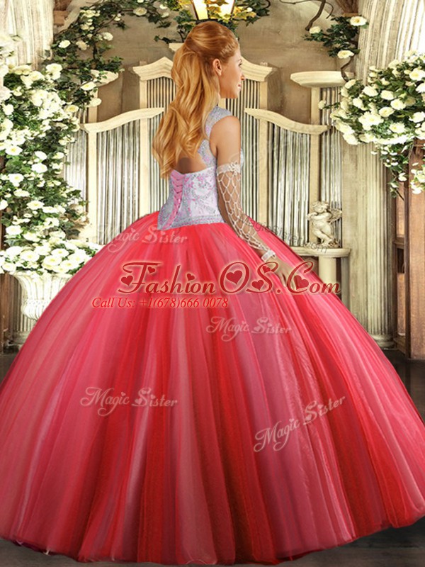 Sleeveless Floor Length Beading Lace Up Sweet 16 Dress with Lavender