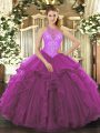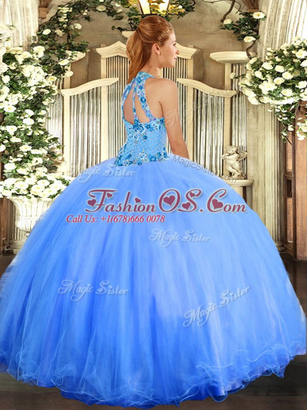Fancy Lavender Halter Top Neckline Embroidery Sweet 16 Quinceanera Dress Sleeveless Lace Up