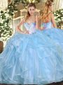 Dramatic Rose Pink Ball Gowns Beading Quinceanera Dress Lace Up Tulle Sleeveless Floor Length