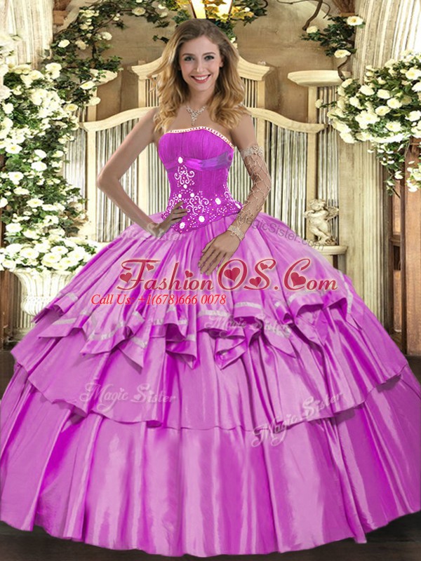 Lilac Sleeveless Organza and Taffeta Lace Up Sweet 16 Dresses for Military Ball and Sweet 16 and Quinceanera