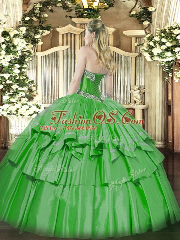 Yellow Green Organza and Taffeta Lace Up Sweetheart Sleeveless Floor Length Quinceanera Dress Beading and Ruffled Layers