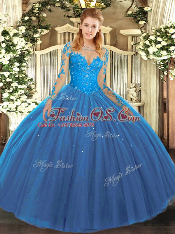 Floor Length Lace Up Sweet 16 Quinceanera Dress Teal for Military Ball and Sweet 16 and Quinceanera with Lace