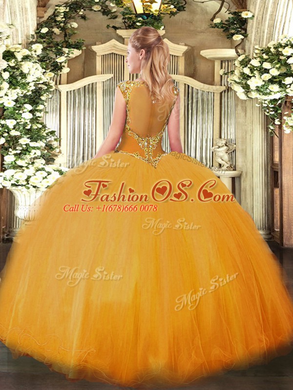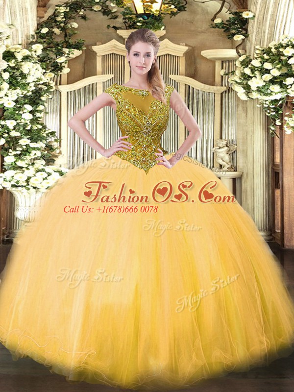 Attractive Gold Zipper 15 Quinceanera Dress Beading Sleeveless Floor Length