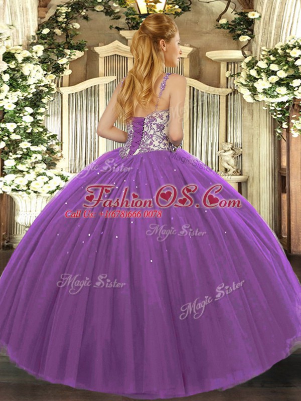 Beauteous Navy Blue Straps Neckline Appliques Ball Gown Prom Dress Sleeveless Lace Up