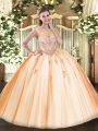 Sequined Sleeveless Floor Length Sweet 16 Dress and Appliques