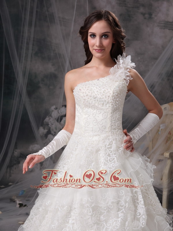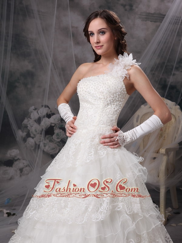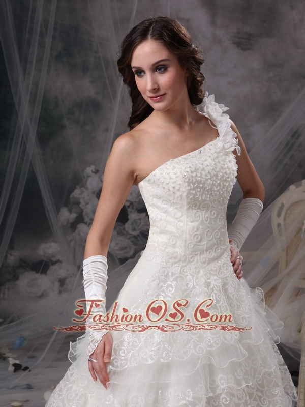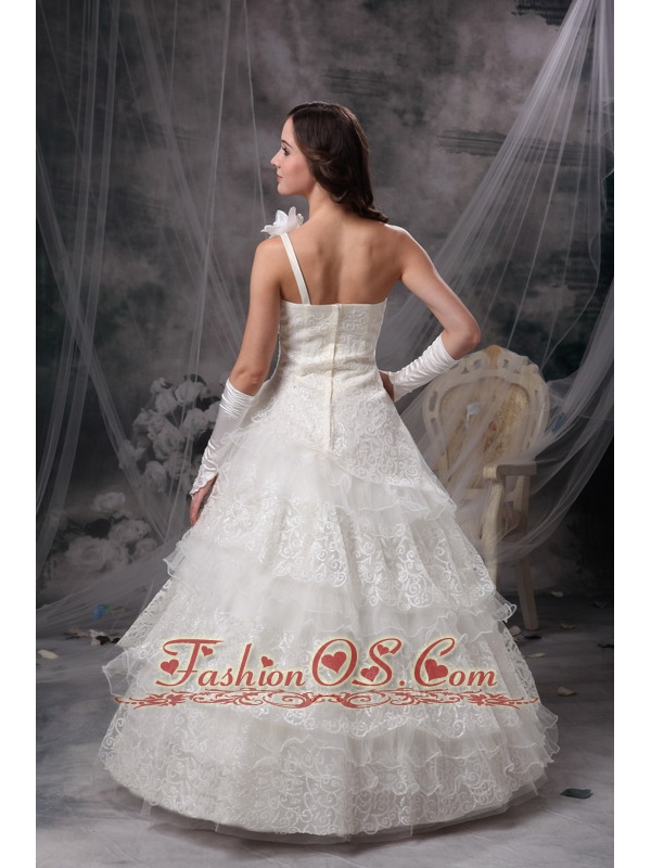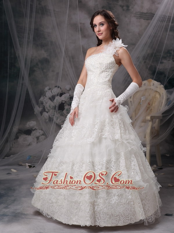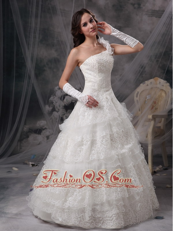 Customize Wedding Dress A-line One Shoulder Satin and Lace Floor-length