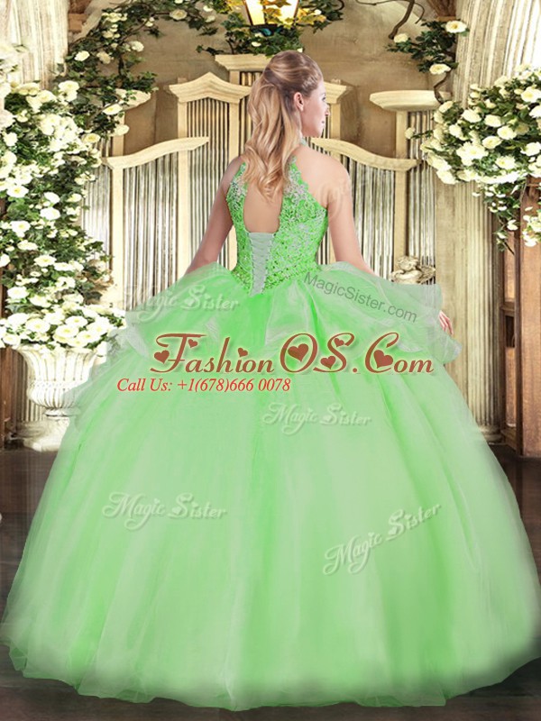 Pretty Aqua Blue Sleeveless Beading Floor Length Sweet 16 Dresses