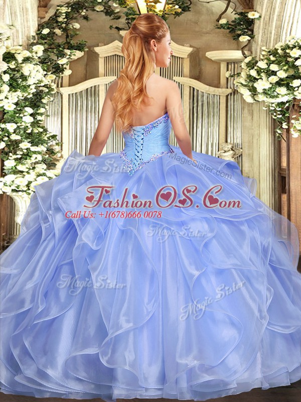 Extravagant Sleeveless Appliques and Ruffles Lace Up Quince Ball Gowns