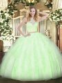 Cute Floor Length Lace Up Quince Ball Gowns Lilac for Military Ball and Sweet 16 and Quinceanera with Beading and Ruffles