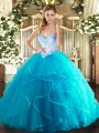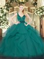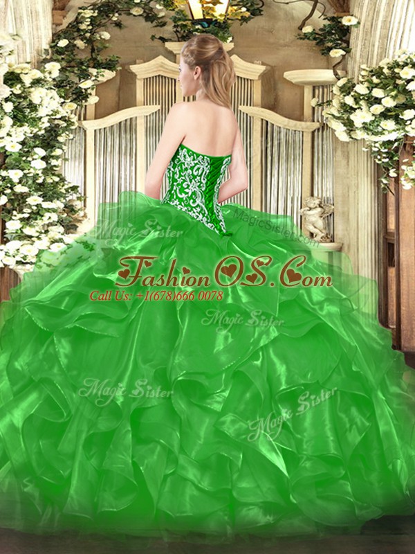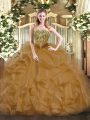Sexy Olive Green Sweetheart Neckline Beading and Ruffles Ball Gown Prom Dress Sleeveless Lace Up