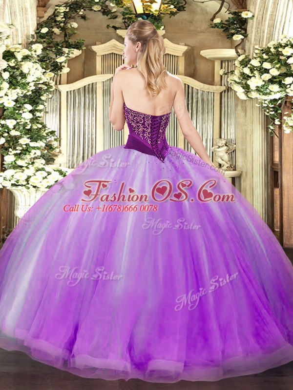 Tulle Strapless Sleeveless Lace Up Beading and Ruffles 15th Birthday Dress in