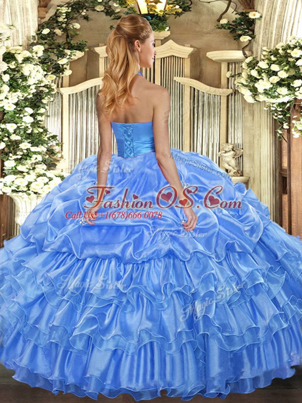 Unique Blue Sleeveless Ruffled Layers and Pick Ups Floor Length Quinceanera Gowns