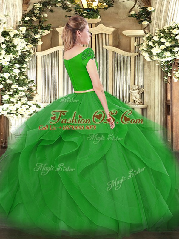 Brown Short Sleeves Floor Length Appliques and Ruffles Zipper Vestidos de Quinceanera