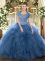 Perfect Organza Sweetheart Sleeveless Lace Up Beading and Ruffles and Pick Ups Quince Ball Gowns in Lavender
