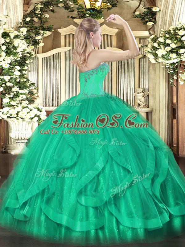 Sleeveless Beading and Ruffles Lace Up Sweet 16 Dress