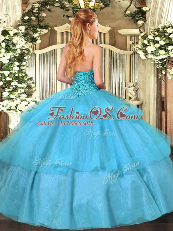Deluxe Tulle Sleeveless Floor Length 15 Quinceanera Dress and Beading and Ruffled Layers