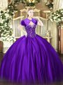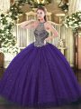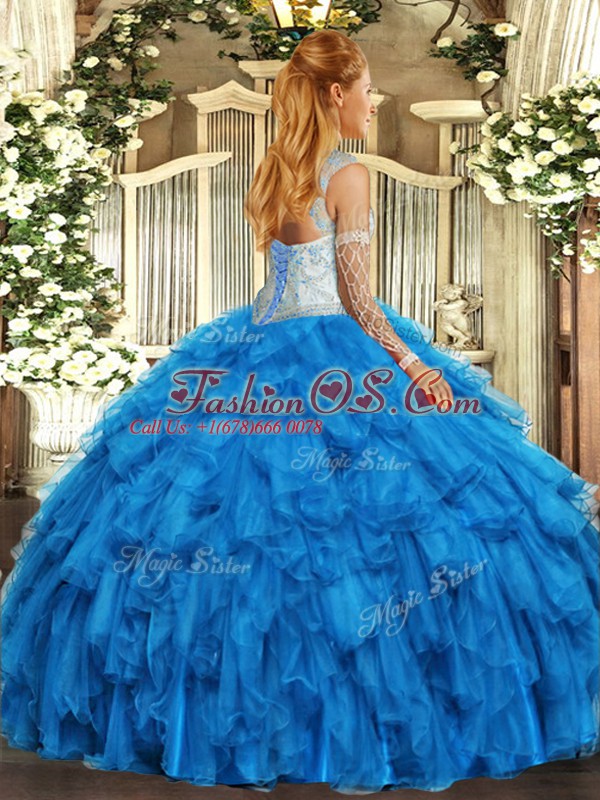 Sleeveless Organza Floor Length Lace Up 15 Quinceanera Dress in Fuchsia with Beading and Ruffles