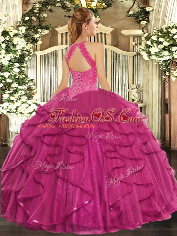 Glittering Floor Length Lace Up Sweet 16 Dress Teal for Military Ball and Sweet 16 and Quinceanera with Beading and Ruffles