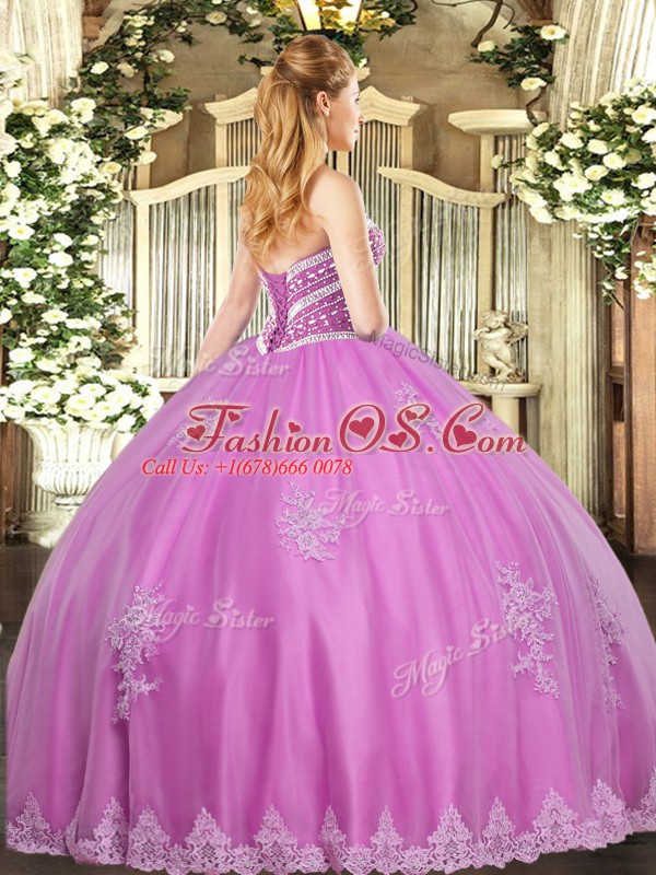 Traditional Lavender Tulle Lace Up Sweet 16 Dresses Sleeveless Floor Length Beading and Appliques