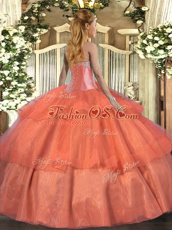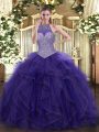 Lavender Tulle Lace Up 15th Birthday Dress Sleeveless Floor Length Beading and Ruffled Layers