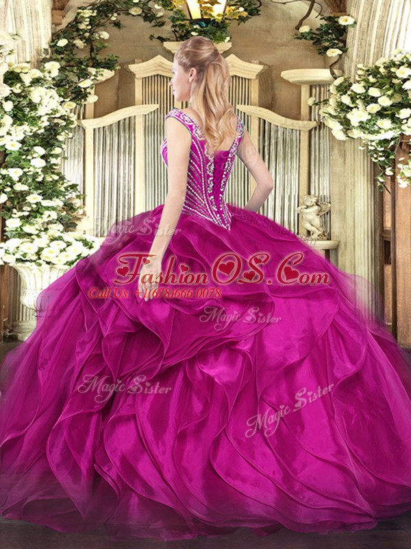 Captivating Organza Sleeveless Floor Length 15 Quinceanera Dress and Beading and Ruffles